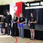 Swoim występem uroczystość uświetniły uczennice ze szkolnego zespołu wokalnego „W dobrym tonie”. Ciekawym doświadczeniem było też „odwrócenie ról”, bo nasi uczniowie: Nikola, Małgosia, Klaudia, Weronika i Filip zaprezentowali zgromadzonym gościom (w większości nauczycielom) krótką prezentację na temat „fałszywych przyjaciół” (czyli słów brzmiących podobnie, ale o całkowicie różnym znaczeniu) w języku polskim i językach: hiszpańskim, francuskim i niemieckim, a potem … sprawdzili ich wiedzę quizem! Okazuje się, że bycie przez moment „uczniem” przyniosło wiele radości, ale nie obyło się bez ściągania i podpowiadania