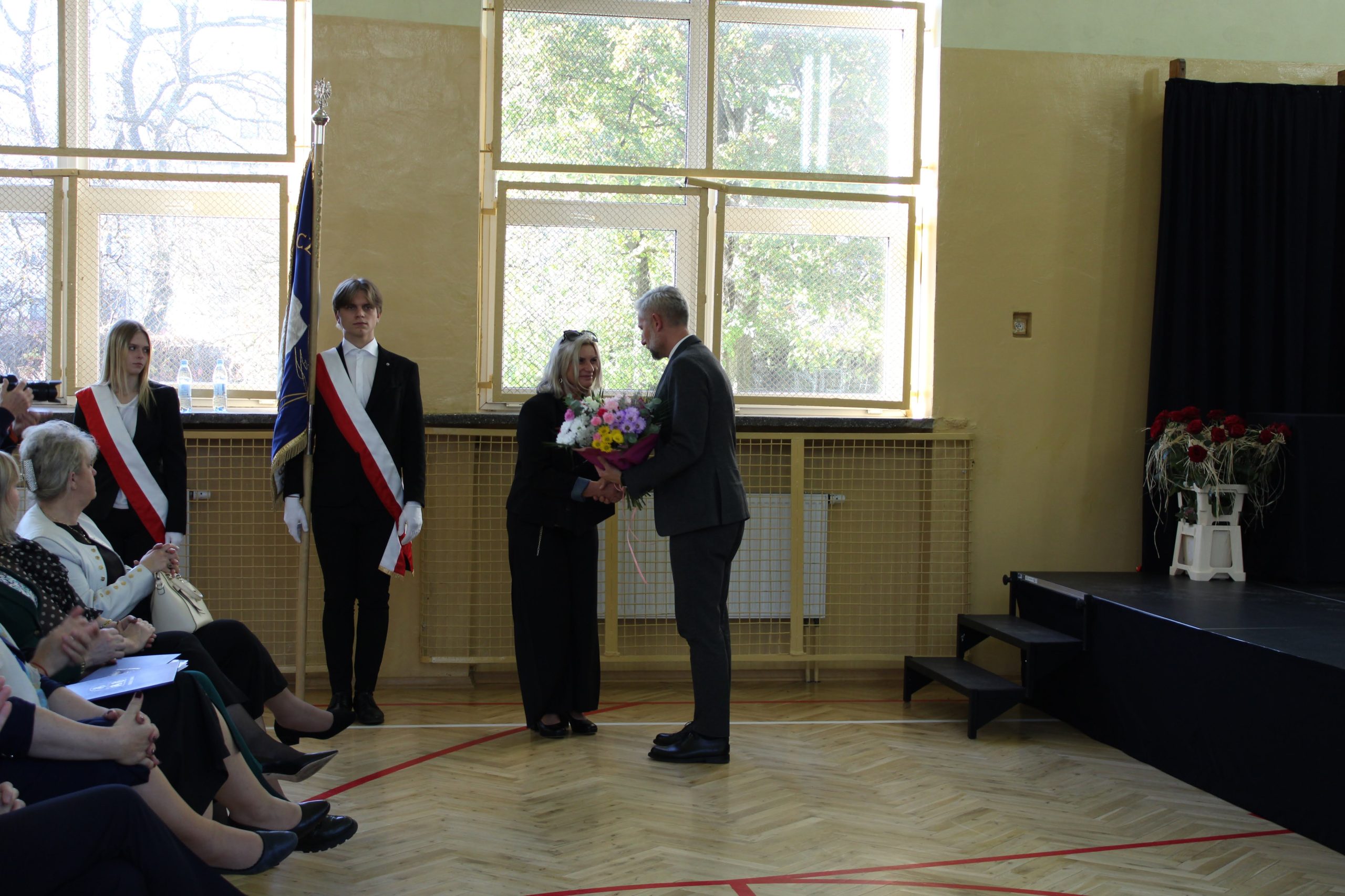 Punktem kulminacyjnym uroczystości było wręczanie nagród Starosty Zgierskiego. Wśród dziewiętnastu nagrodzonych znalazły się dwie nauczycielki „Staszica”: p. Beata Pośpiech – Dyrektor ZSO oraz p. Anna Walczak – nauczycielka matematyki.