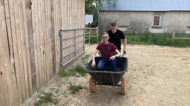 A później zabraliśmy się do roboty! Sprzątaliśmy starą ściółkę i kładliśmy nową, dokładaliśmy świeżego sianka do paśników, czesaliśmy konie i pomagaliśmy czyścić ich kopyta, karmiliśmy jabłkami i marchewkami, nie mogło zabraknąć miziania naszych milusińskich