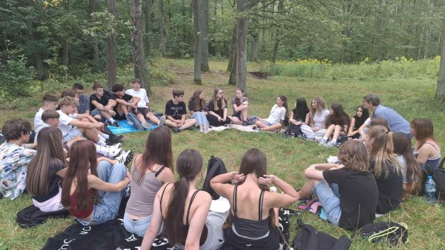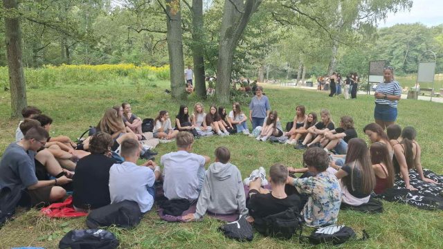 wszystkie klasy wraz z wychowawcami i nauczycielami uczestniczyły w zajęciach edukacyjno-integracyjnych poza budynkiem szkoły, w którym właśnie kończy się remont.