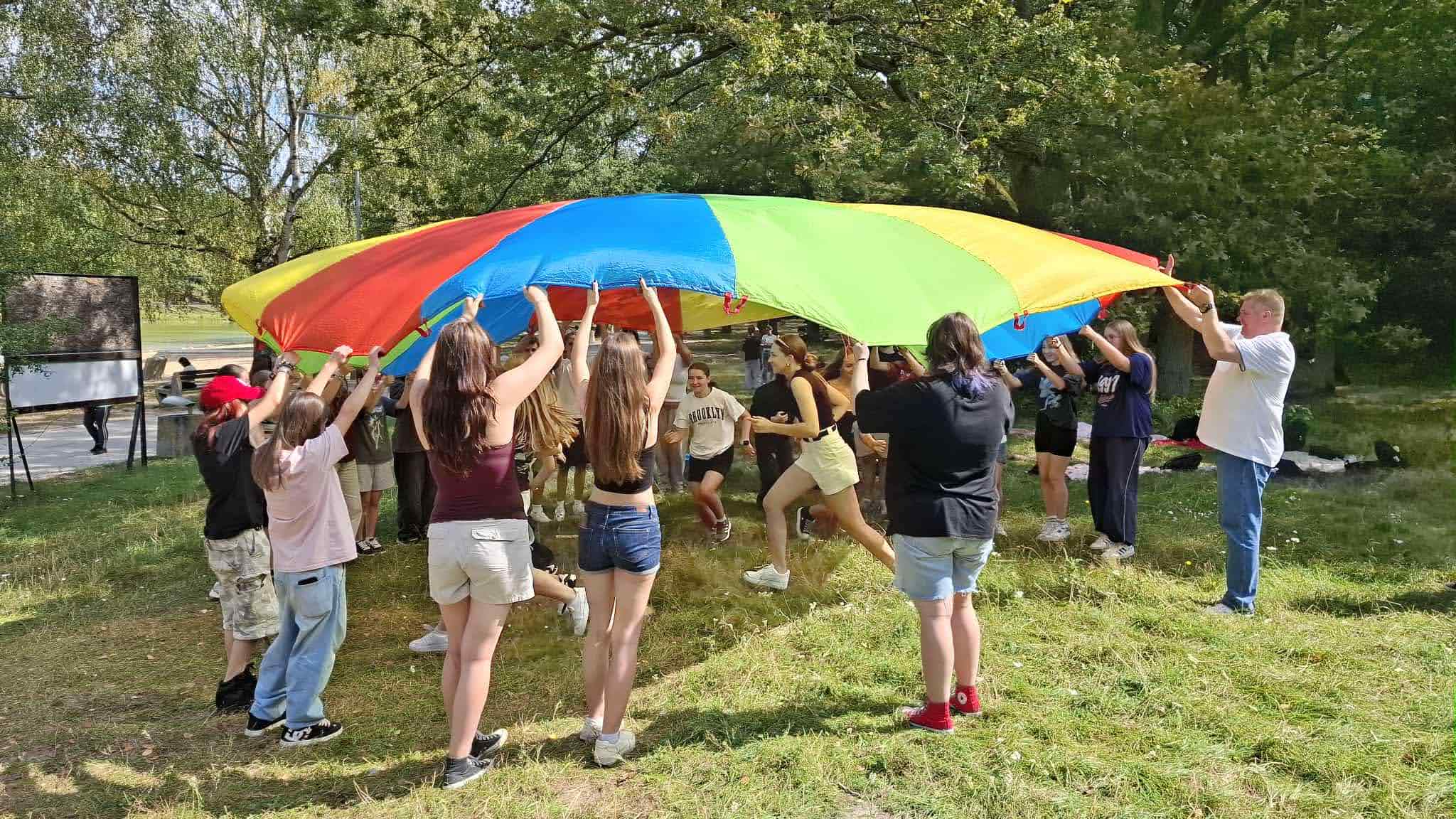 wszystkie klasy wraz z wychowawcami i nauczycielami uczestniczyły w zajęciach edukacyjno-integracyjnych poza budynkiem szkoły, w którym właśnie kończy się remont.